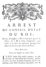 Entre 1774 et 1776, à la suite d’une série d'effondrements des anciennes exploitations souterraines du sud de Paris, un vent de panique souffle sur la population. Par l’arrêt du 4 avril 1777, Louis XVI crée l'Inspection des Carrières pour tenter de maîtriser ce fléau.